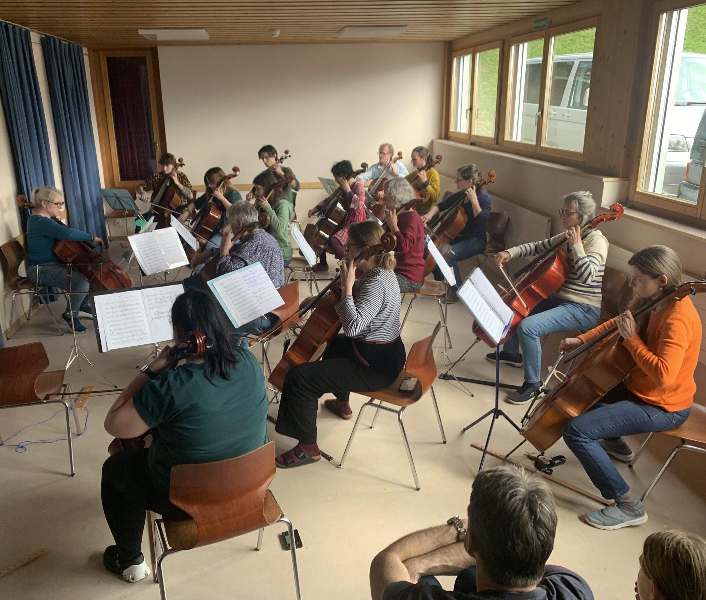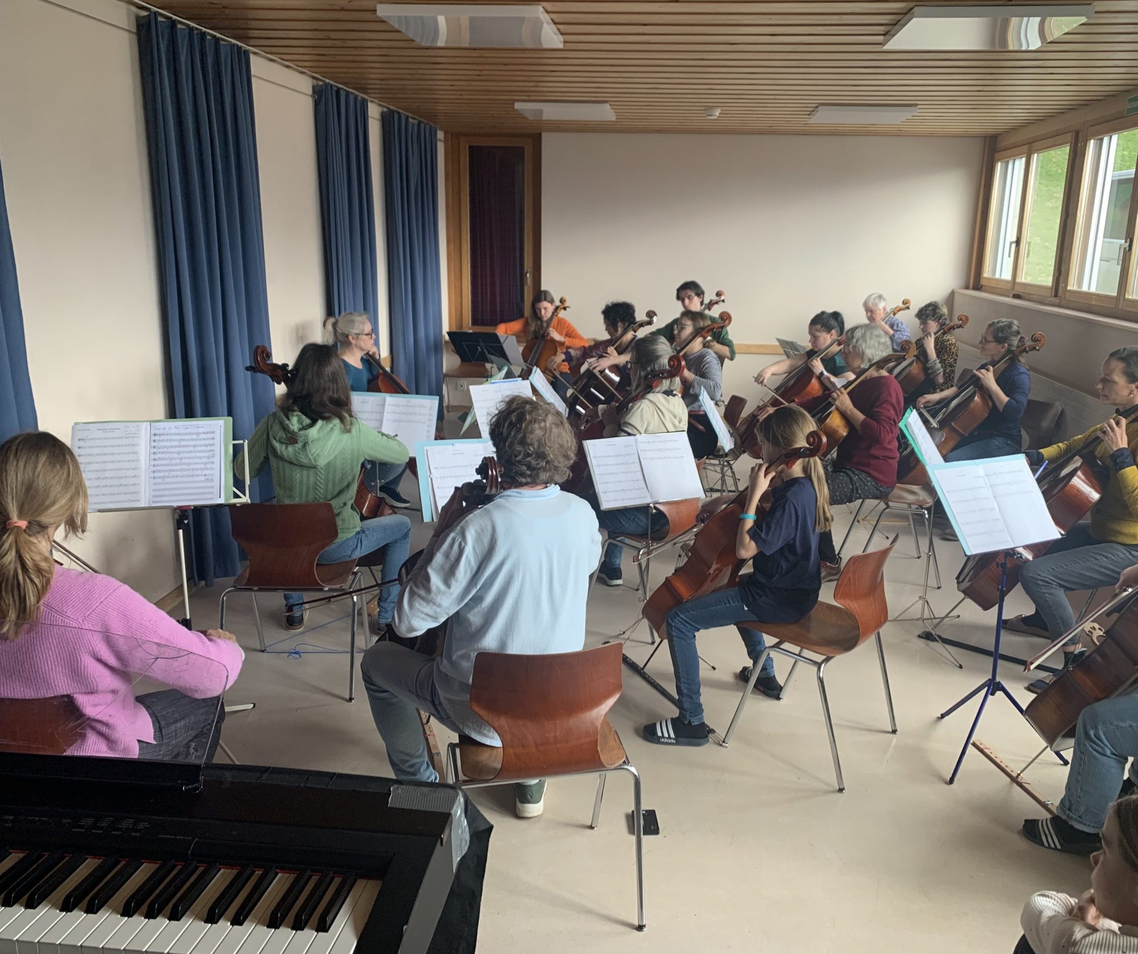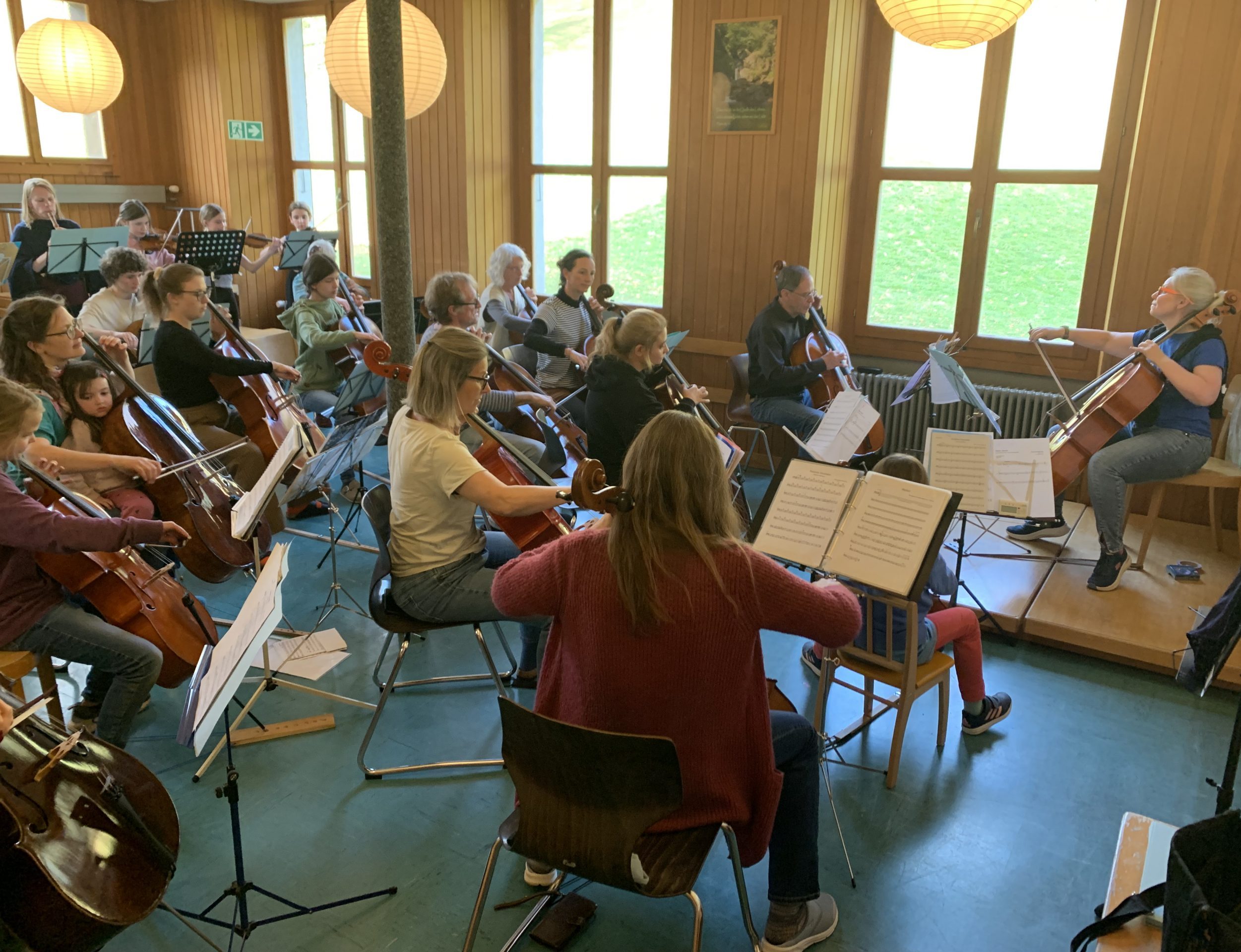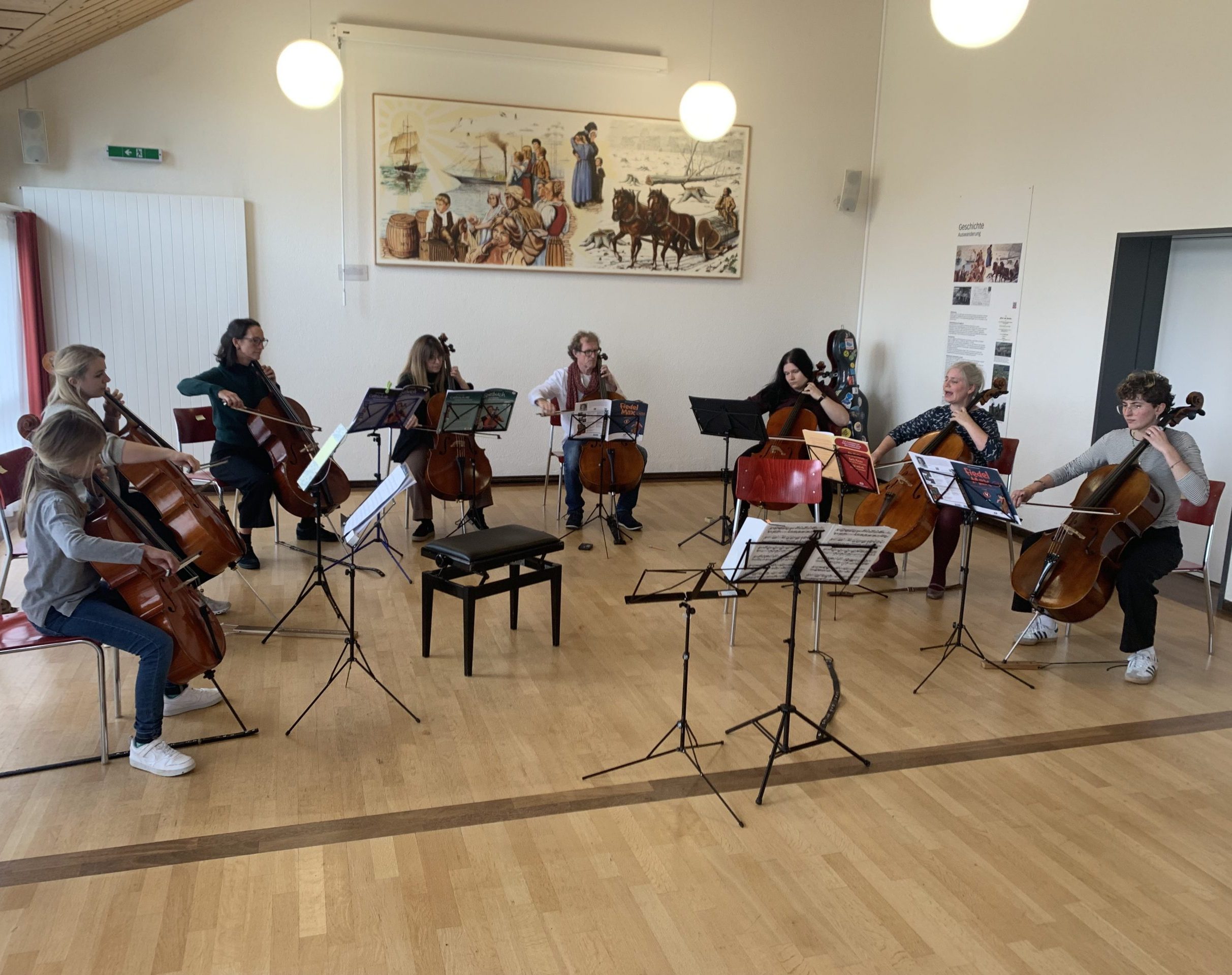 Cellovorspiel im Gemeindesaal in Rütschelen