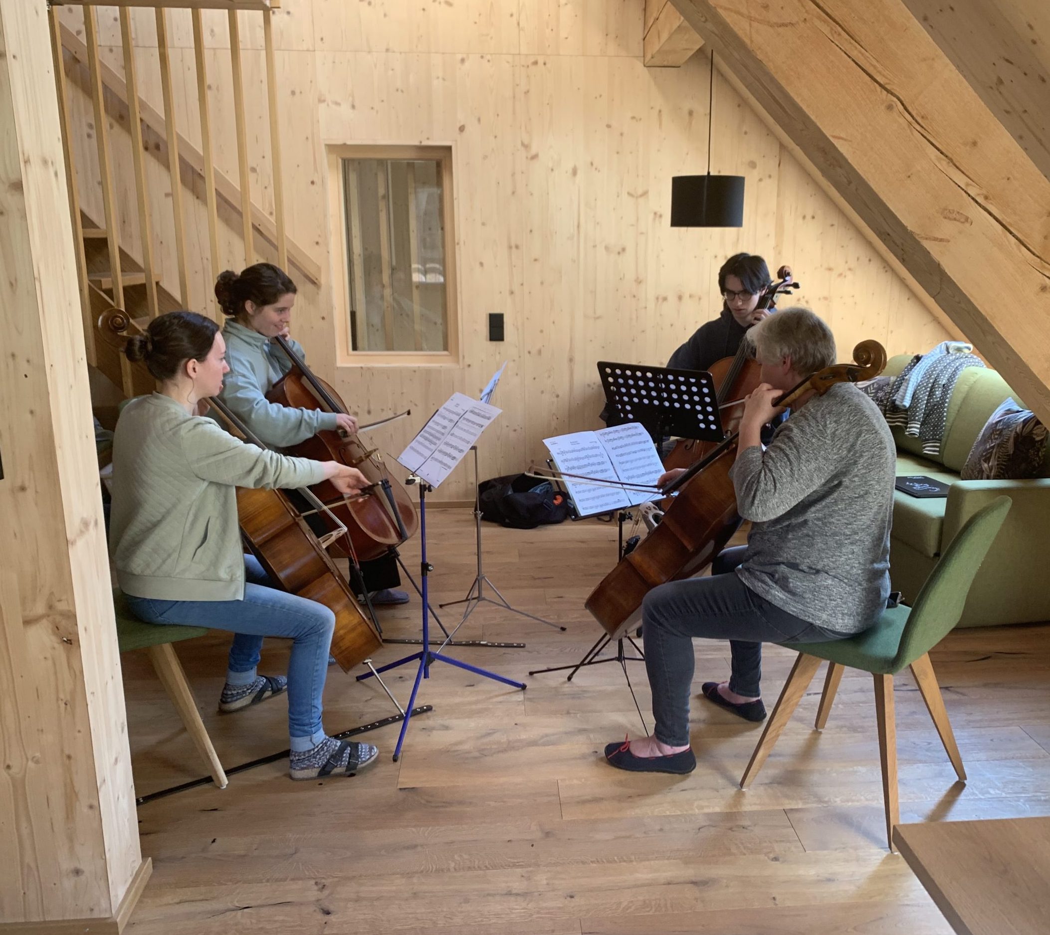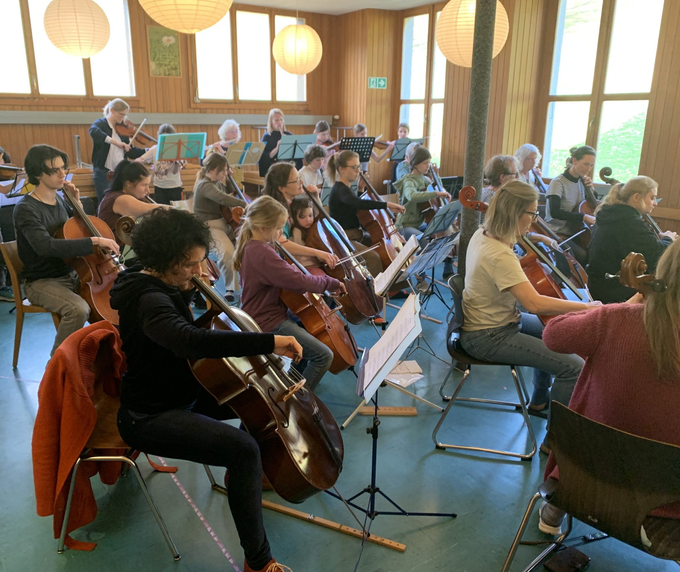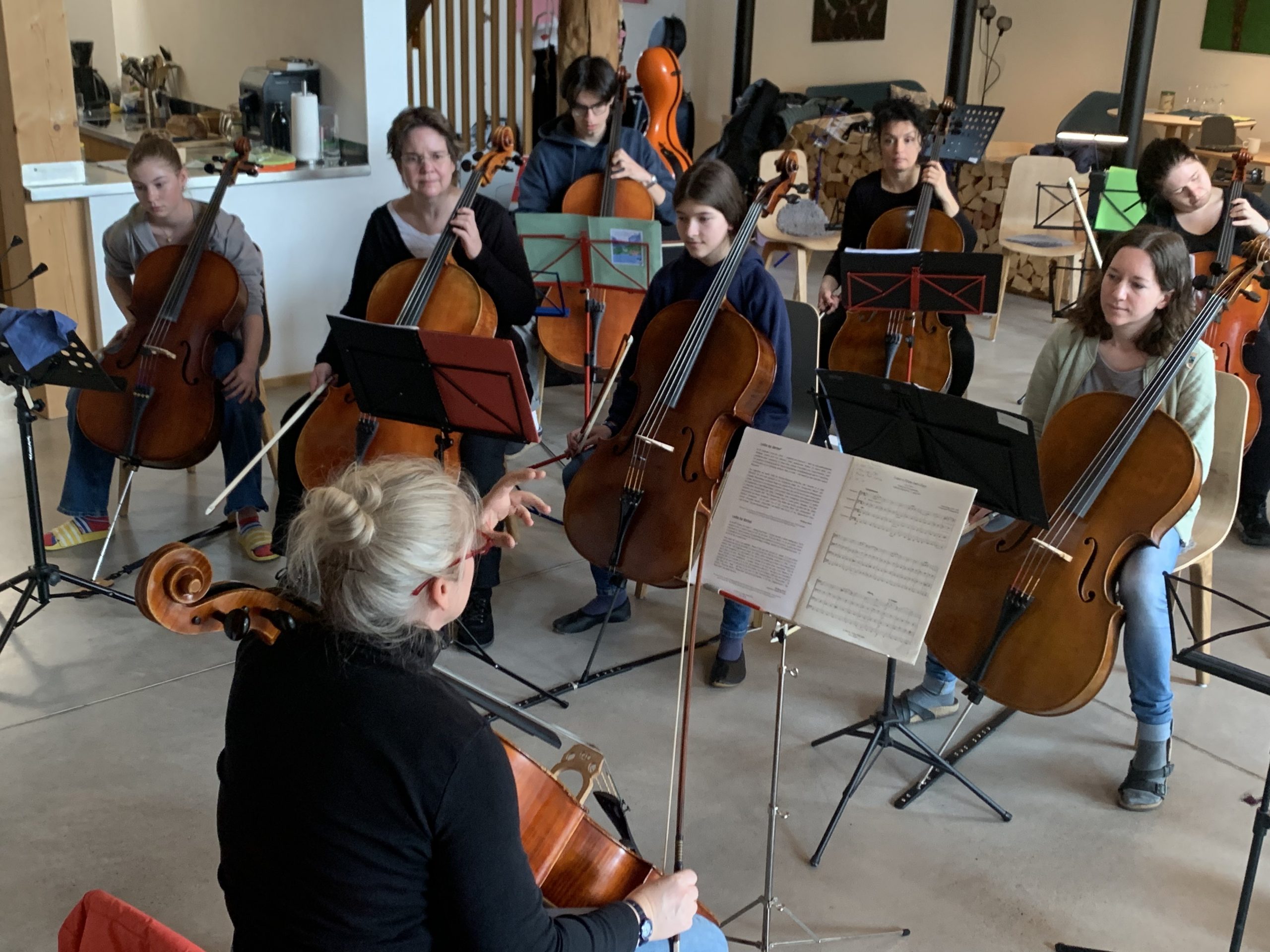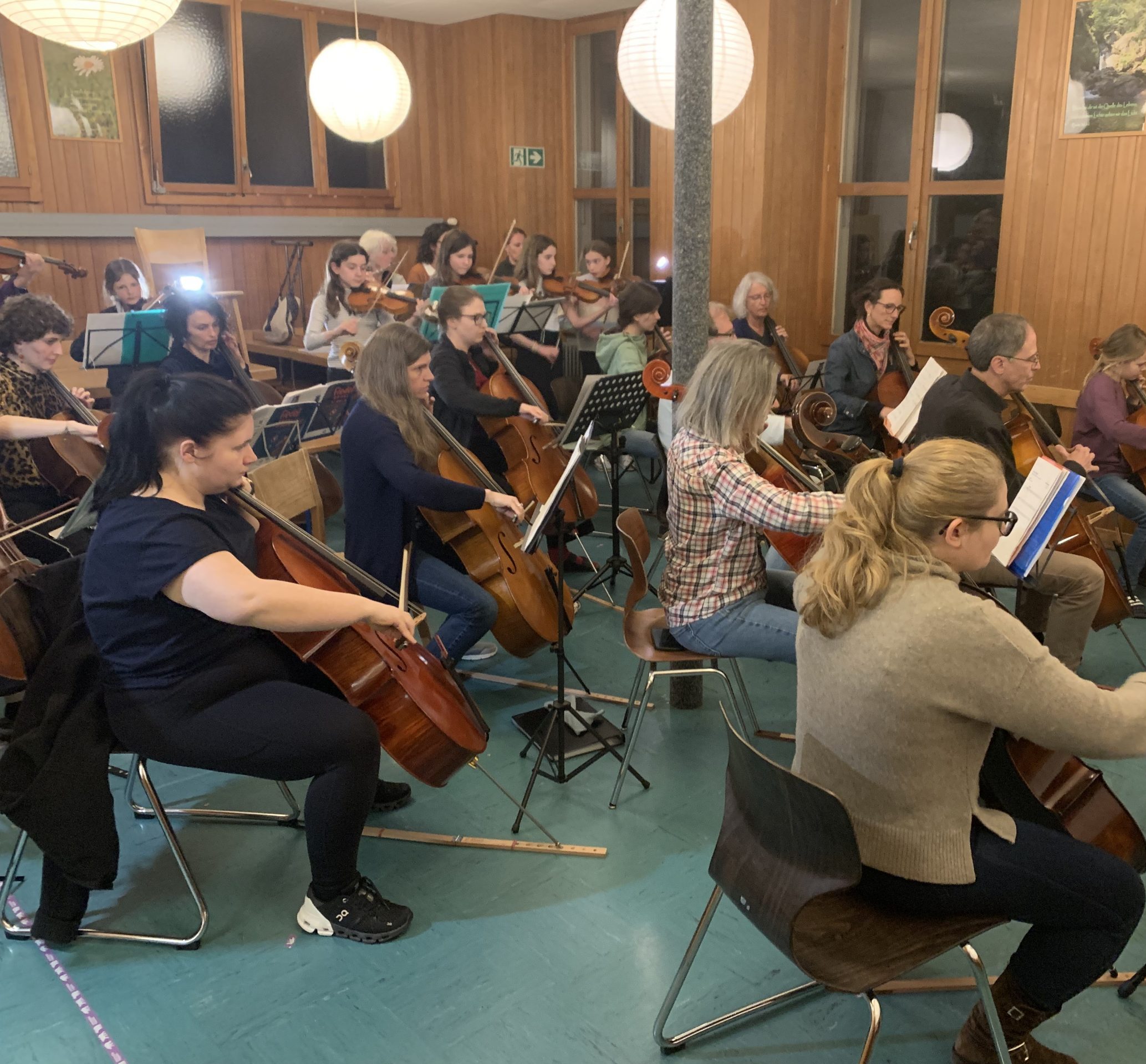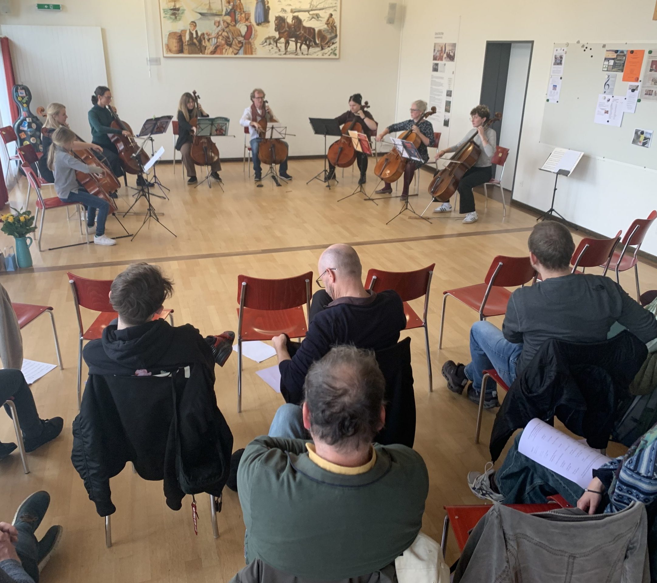 Cellovorspiel im Gemeindesaal in Rütschelen